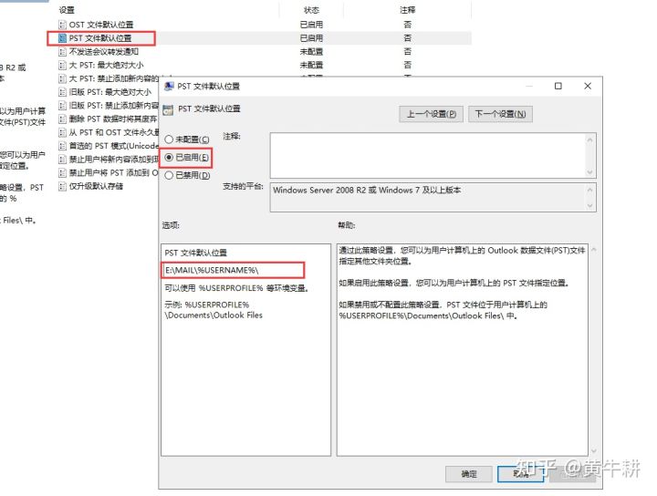 Tips:在修改完成组策略后,一定要先重启动操作系统,再进行邮件用户的配置,否则可能出现路径仍然是"C:Users用户名AppDataLocalMicrosoftOutlook"